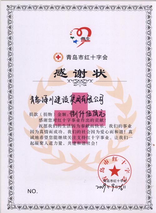 “微塵”基金會(huì)感謝狀