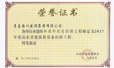 海川集團(tuán)農(nóng)業(yè)大學(xué)科技樓項(xiàng)目榮獲山東省泰山杯2017-05-31海川集團(tuán)七分公司承建的農(nóng)業(yè)大學(xué)科技樓項(xiàng)目近日榮獲山東省建筑工程質(zhì)量最高獎(jiǎng)—“泰山杯”。今年4月,山東省“泰山杯”驗(yàn)收專家組一行4人在市建筑業(yè)協(xié)會(huì)負(fù)責(zé)人的陪同下,對(duì)我單位申報(bào)“泰山杯”的青島農(nóng)業(yè)大學(xué)科技實(shí)驗(yàn)樓進(jìn)行了驗(yàn)收。青島農(nóng)業(yè)大學(xué)科技實(shí)驗(yàn)樓工程用于科技實(shí)驗(yàn)室和公共平臺(tái)實(shí)...