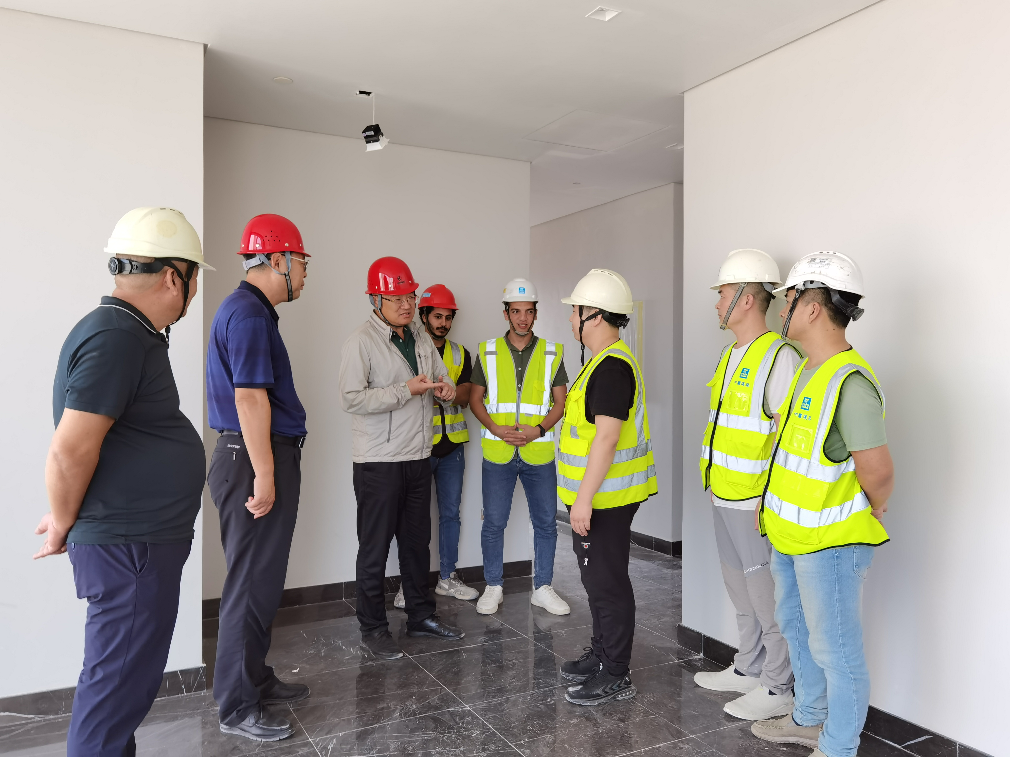 助力共建“一帶一路”高質(zhì)量發(fā)展 董事長吳鑫一行走訪慰問華聯(lián)建科埃及項(xiàng)目部2023-11-3011月2日,青島海川建設(shè)集團(tuán)黨委書記、董事長吳鑫一行來到埃及新行政首都中央商務(wù)區(qū)項(xiàng)目,走訪了由海川建設(shè)旗下華聯(lián)建筑科技集團(tuán)(青島)有限公司負(fù)責(zé)裝修的D02樓棟,現(xiàn)場(chǎng)查看了施工完成情況,聽取項(xiàng)目部的工作匯報(bào),對(duì)項(xiàng)目下一步竣工工作做出安排,并對(duì)施工人員發(fā)放慰問品,勉勵(lì)項(xiàng)目積... -