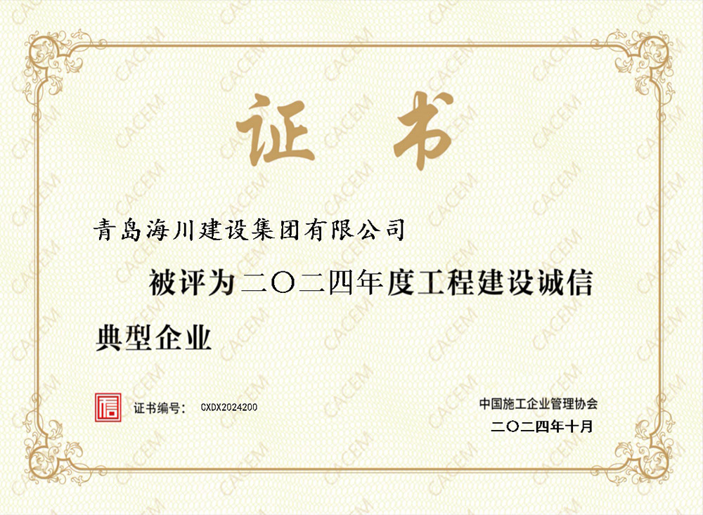 青島海川建設(shè)集團(tuán)榮獲工程建設(shè)誠信典型企業(yè)等多項(xiàng)榮譽(yù)2024-10-31為全面推進(jìn)工程建設(shè)行業(yè)信用體系建設(shè),樹立誠信建造品牌,營造良好信用環(huán)境,中國施工企業(yè)管理協(xié)會(huì)繼續(xù)開展本年度工程建設(shè)誠信典型企業(yè)評(píng)估工作,經(jīng)企業(yè)申報(bào)、評(píng)選、公示、公布,青島海川建設(shè)集團(tuán)有限公司成功獲評(píng)工程建設(shè)誠信典型企業(yè)榮譽(yù),連續(xù)5年榮獲此殊榮。在中國施工企業(yè)管理協(xié)會(huì)開展... -