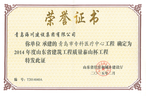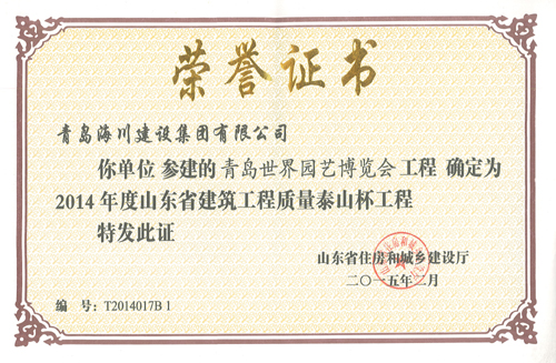 海川集團(tuán)捧回五項(xiàng)泰山杯證書