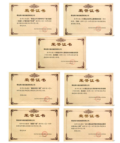 最近,公司從市城鄉(xiāng)建委建管局領(lǐng)回七項(xiàng)榮譽(yù)證書(shū),其中三項(xiàng)“青島市房屋建筑優(yōu)質(zhì)結(jié)構(gòu)工程獎(jiǎng)”,分別是:三分公司施工的青島大好河山葡萄酒莊園項(xiàng)目和青島市中心聾校綜合樓建設(shè)項(xiàng)目;七分公司施工的青島農(nóng)業(yè)大學(xué)新建科技實(shí)驗(yàn)樓工程。四項(xiàng)“青島市建筑業(yè)新技術(shù)應(yīng)用示范工程”分別是:一分公司施工的凱景廣場(chǎng)工程和慧谷時(shí)空1#樓工程;四分公司施工的2014青島世界園藝博覽會(huì)園藝文化中心工程;六分公司施工的青島太平洋夢(mèng)時(shí)代廣場(chǎng)C地塊一標(biāo)段1-3#樓及地下車(chē)庫(kù)工程。