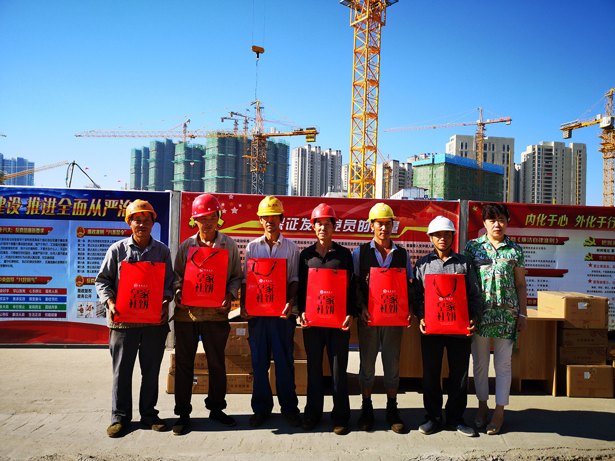 9月24日中秋節(jié)當(dāng)天,青島海川建設(shè)集團(tuán)工會(huì)來(lái)到長(zhǎng)沙路人才公寓項(xiàng)目、富爾瑪國(guó)際家居博覽中心項(xiàng)目、海信北澗社區(qū)項(xiàng)目等在建工地為節(jié)日期間仍然工作在一線的廣大員工送去公司的關(guān)心和祝福。