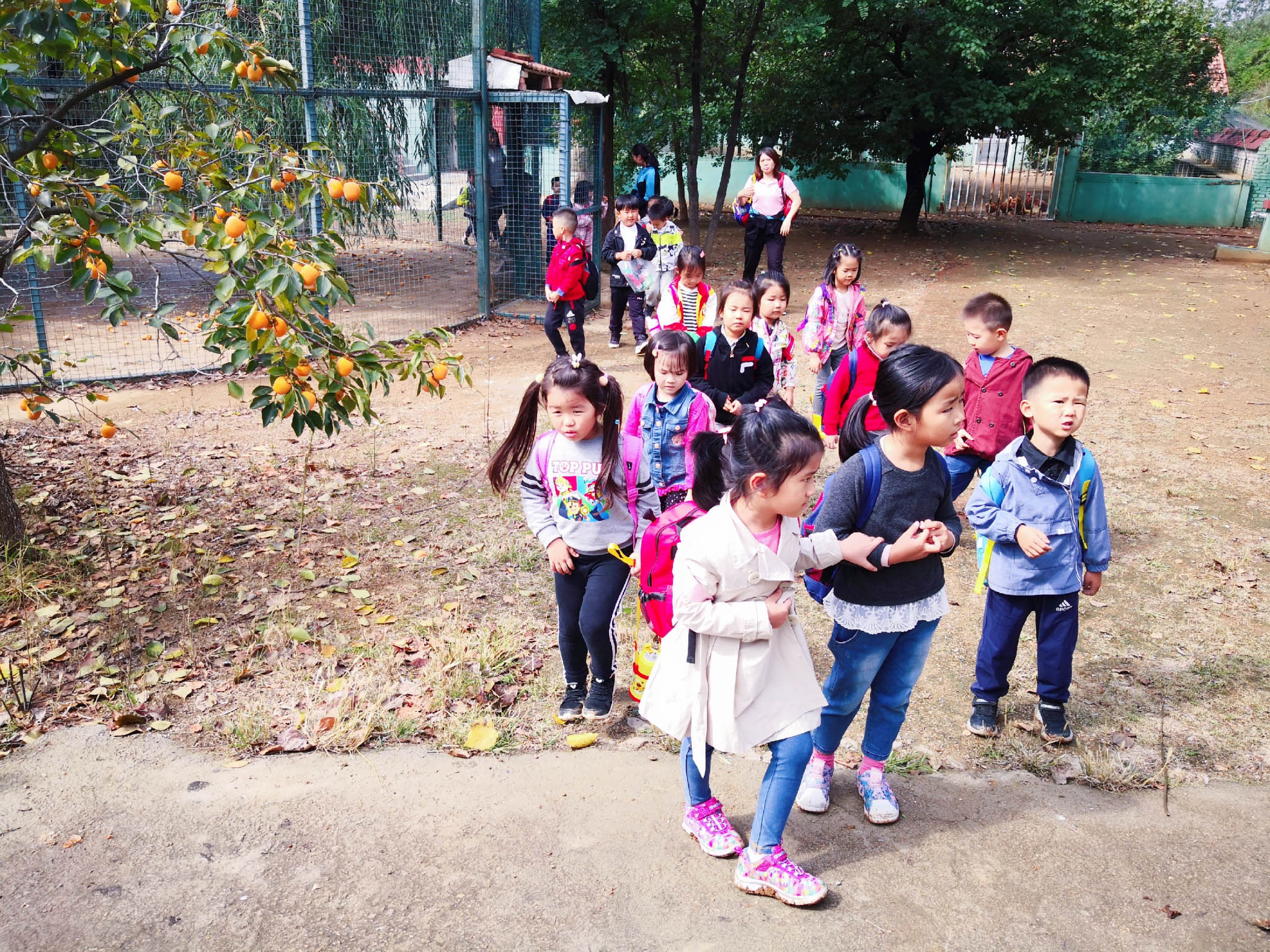 小朋友們滿懷欣喜與好奇走進果園,成熟的柿子壓滿枝頭,一個個飽滿的果實調(diào)皮地躲在葉子下面,熟透的柿子像一個個大燈籠。