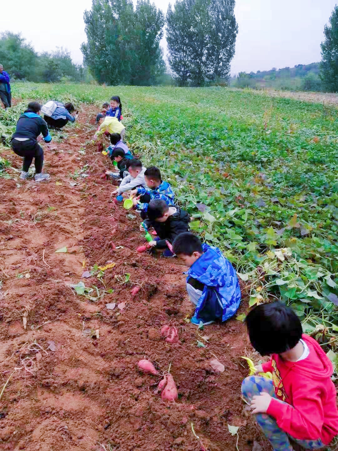 孩子們了解到了應(yīng)時農(nóng)作物紅薯、芋頭、玉米、茄子、青椒、蘿卜、白菜、柿子等果蔬的采摘收獲過程。